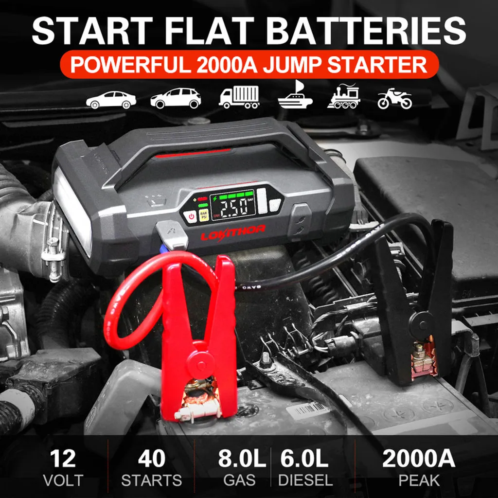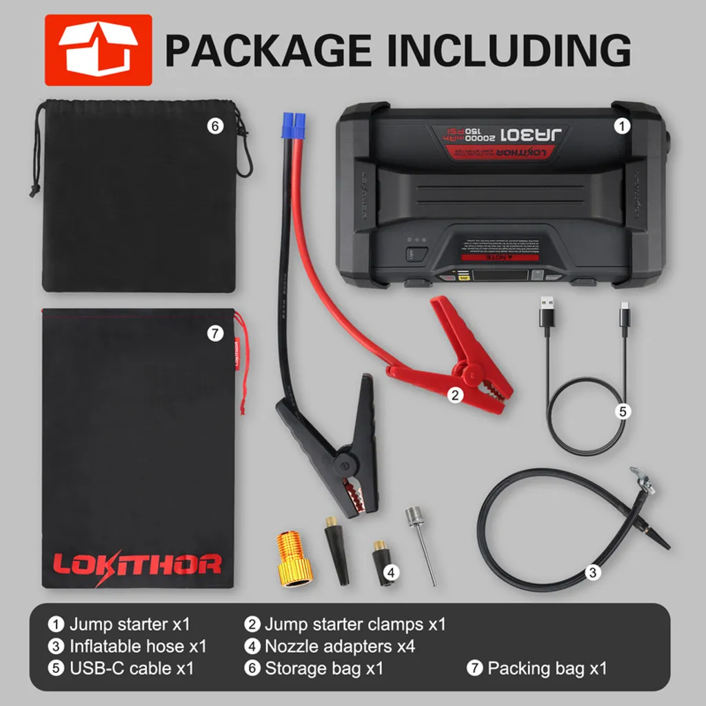 Auto Starthilfe Mit Kompressor 150 PSI Luftpumpe 12V 2000A Starthilfegeräte 22000mAh Powerbank Lokithor JA301 Starthilfekabel Tragbare Batterie Booster