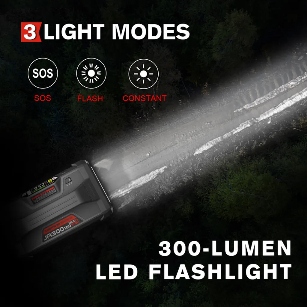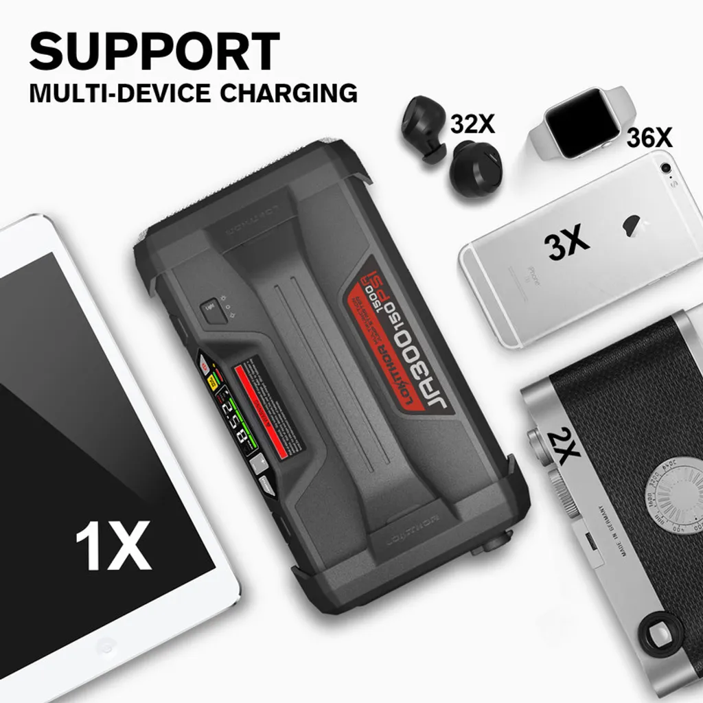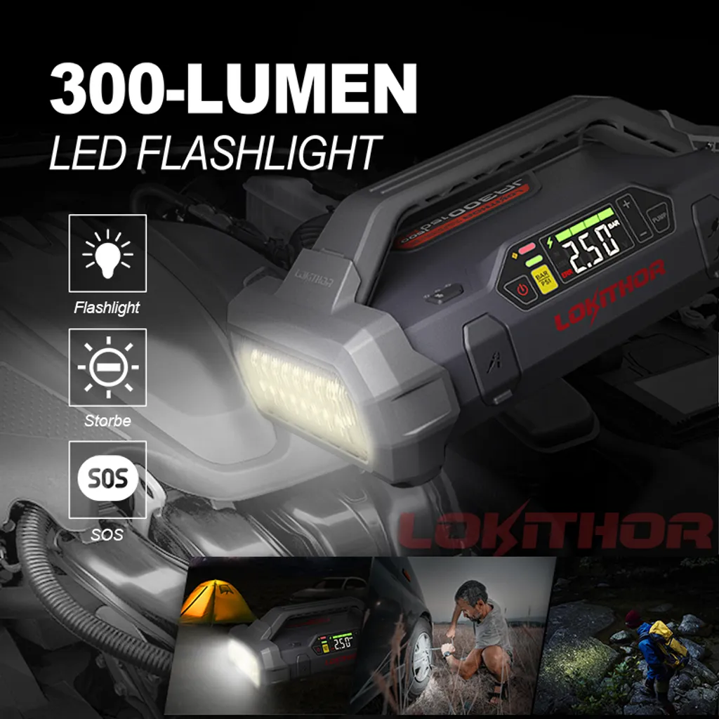 Auto-Starthilfe Mit Luftkompressor 1500A 18000mAh 12V Autobatterie-Booster Für Bis Zu 7L Gas Oder 4,5L Diesel, 150 PSI Reifenfüller Mit Digitalem Bildschirm|Lokithor JA300