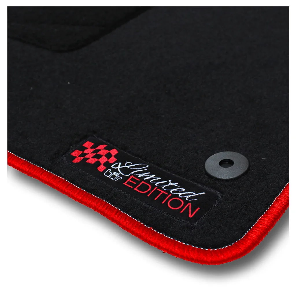 Autofußmatte Limited Edition Mit Logo & Rotem Rand Für Audi A4 8E B6 B7 Baujahr 2000 Bis 2007 Lim. | Mit Druckknopf Befestigung Vorne Und Hinten