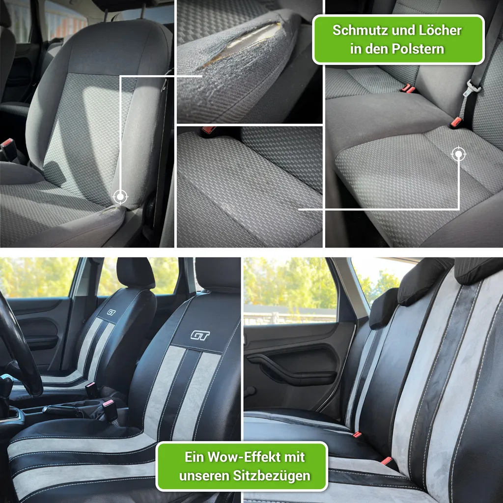 Autositzbezüge 2+3 – Universal Auto Sitzauflagen Set – Dreilagig Auto Sitzbezüge Mit Reißverschluss – Schwarz Schonbezüge Auto – GT-Blau