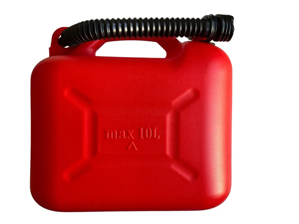 Benzinkanister 10L Kunststoff Rot, Kanister Mit Ausgießer, Reservekanister, Kraftstoffkanister