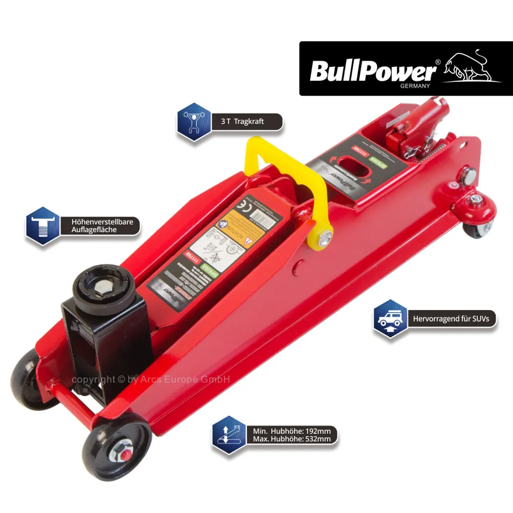 BullPower BP630A Wagenheber Rangierwagenheber Für Geländewagen, SUV, 192-532mm, 3000kg