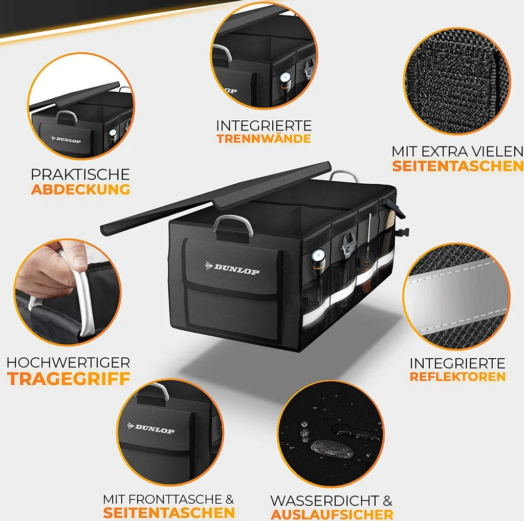 Dunlop Kofferraumtasche Auto Kofferraum Organizer Mit Notfall Taschenlampe