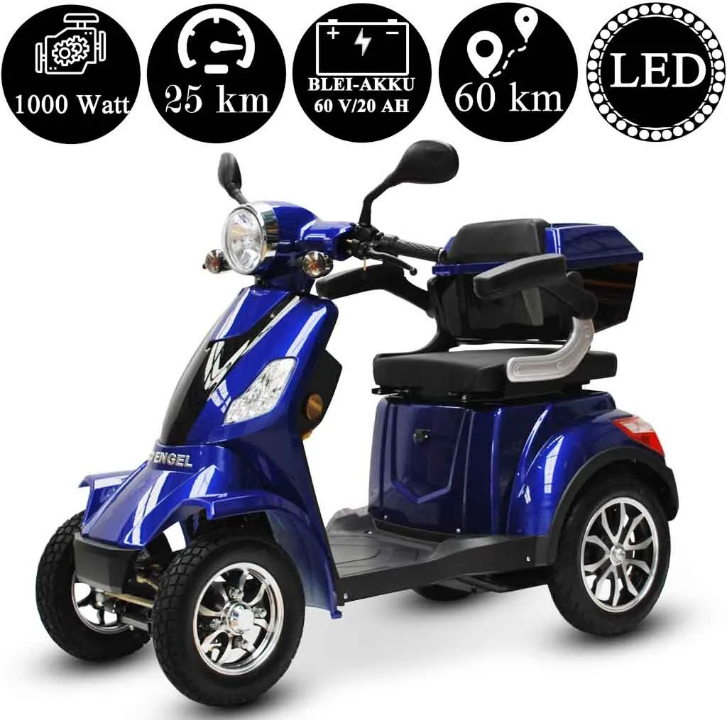 ECO ENGEL 510 Blau, 25 Km/h E-Scooter Senioren Roller Seniorenmobil Elektromobil 4 Räder