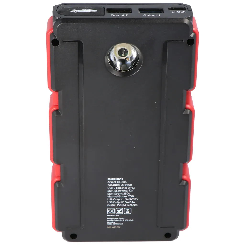 Jumpstarter, Der Kompakte KFZ-Starthilfe-Powerakku Mit Powerbank- Und LED-Taschenlampenfunktion