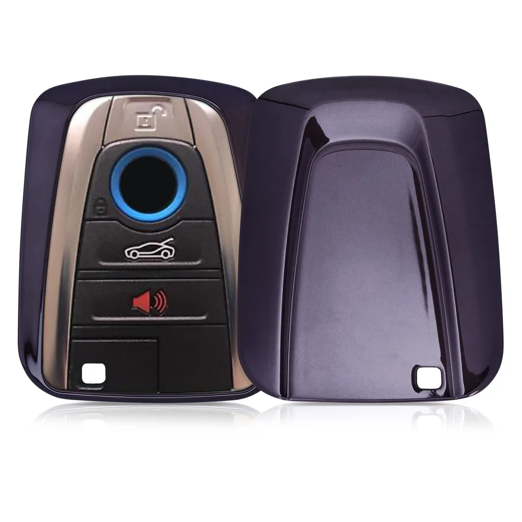 Kwmobile Autoschlüssel Hülle Kompatibel Mit BMW 4-Tasten SmartKey Autoschlüssel – TPU Schutzhülle Schlüsselhülle Cover In Hochglanz Schwarz Violett