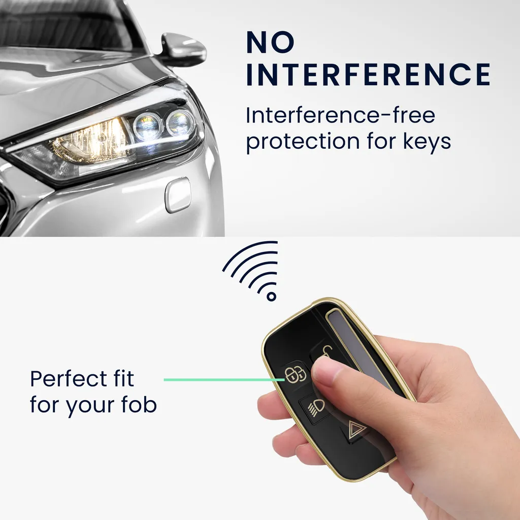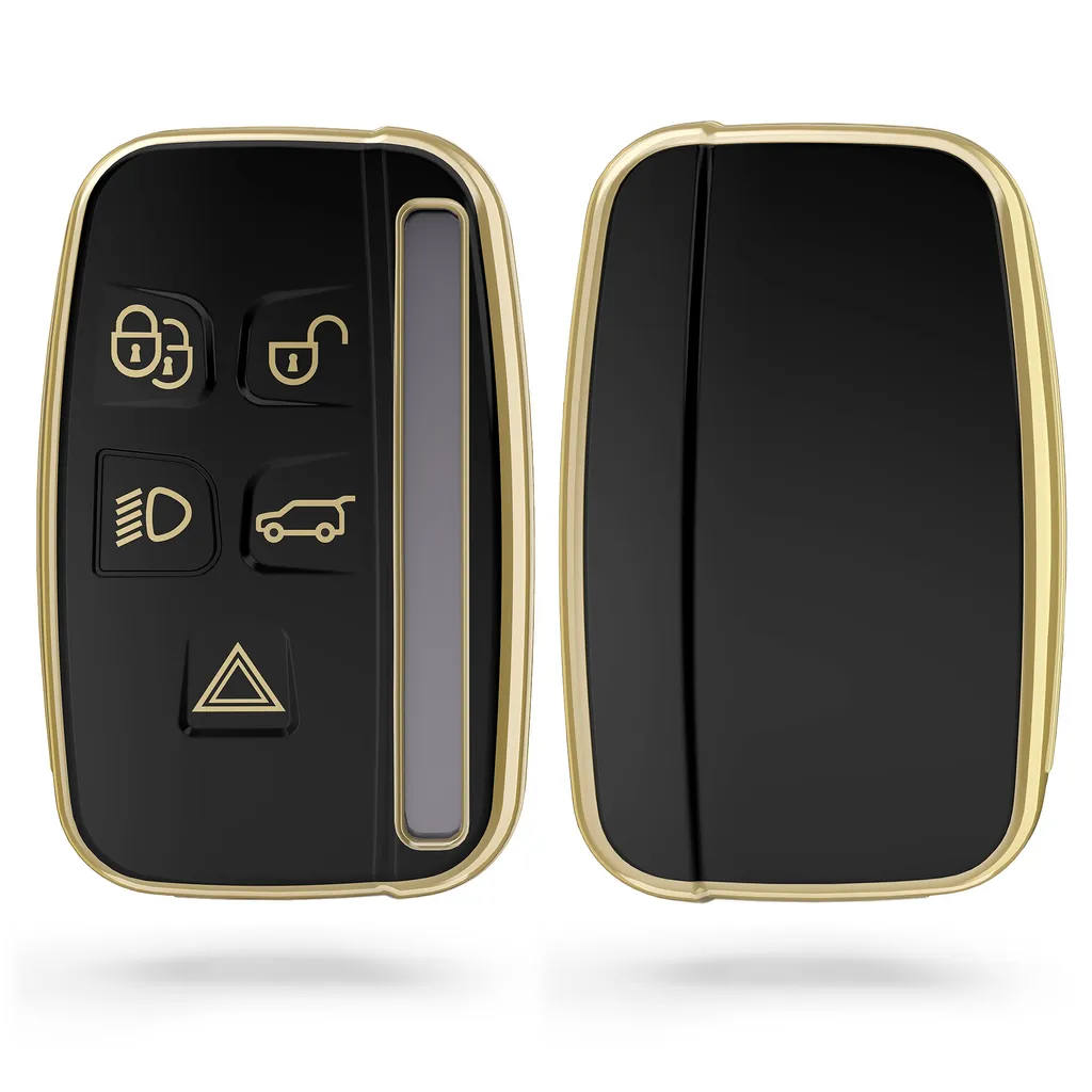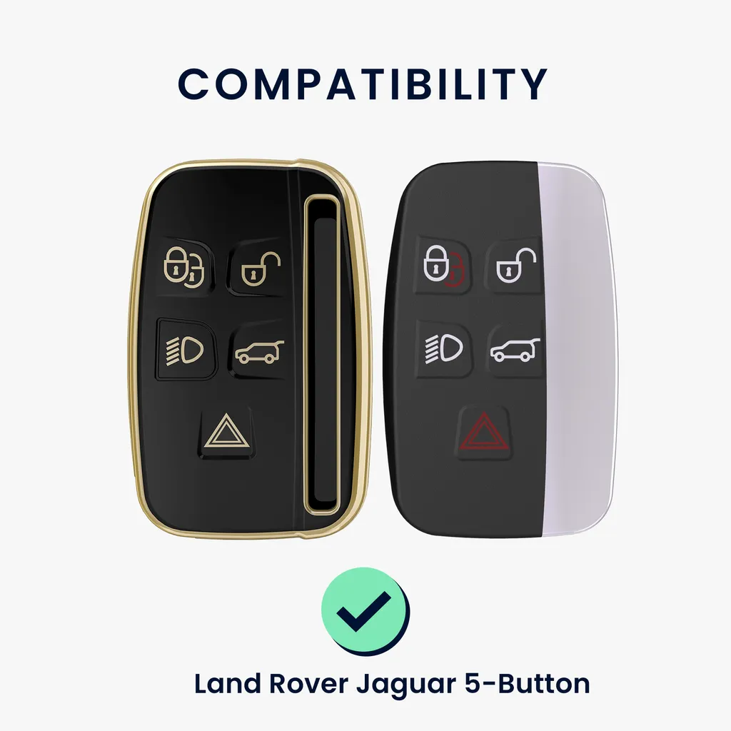 Kwmobile Autoschlüssel Hülle Kompatibel Mit Land Rover Jaguar 5-Tasten Funk Autoschlüssel – Schlüsselhülle Silikon Cover – Schwarz Gold