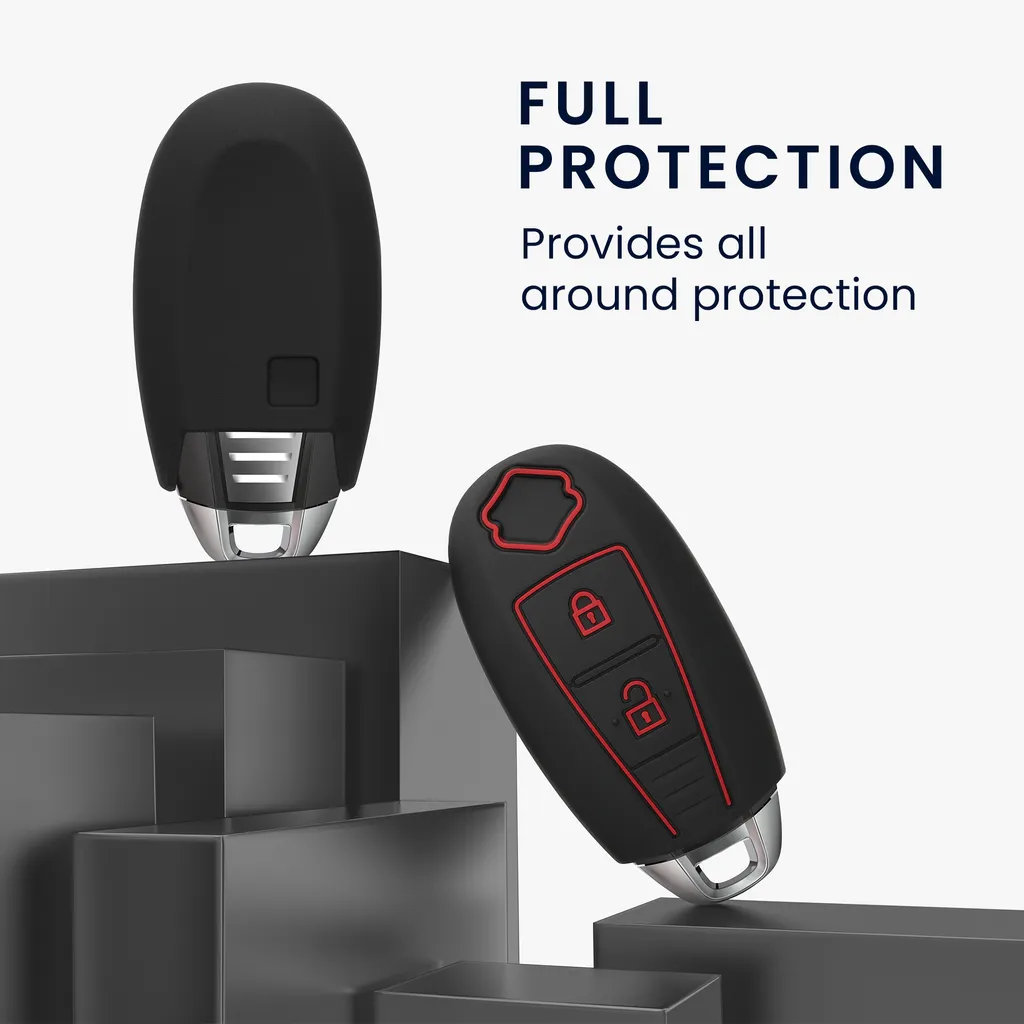 Kwmobile Autoschlüssel Silikon Hülle Kompatibel Mit Suzuki Sport 2-Tasten Autoschlüssel Keyless Go – Schlüsselhülle In Schwarz Rot