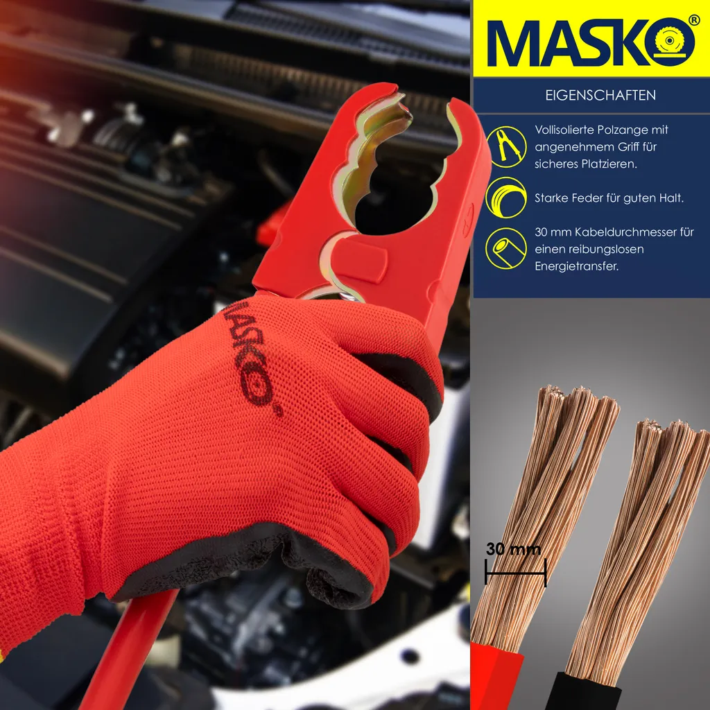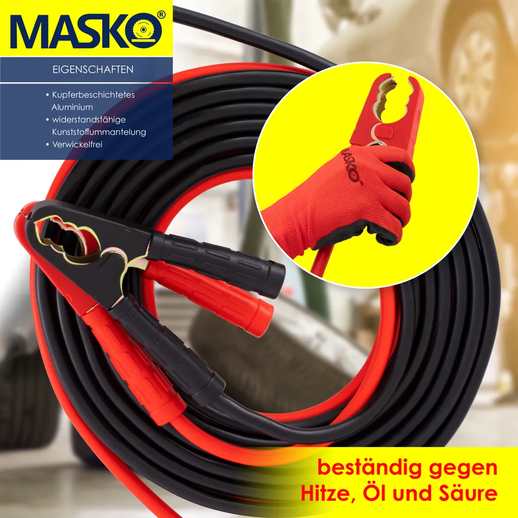 MASKO® Starthilfekabel Überbrückungskabel Für Benzin- Und Dieselmotoren, 6/12/24 Volt. Auto Motorrad Starterkabel Aus Kupfer Inkl. Handschuhe Und Tragetasche (25mm² 1200A / 30mm² 1500A), Größe:6m / 1500amp