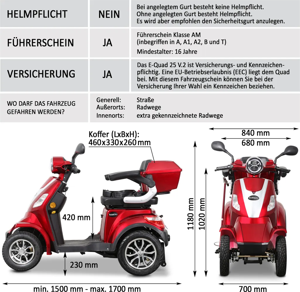 Rolektro, E-Quad 25, Rot, 60V-20Ah Bleigel Akkus, 1000 Watt