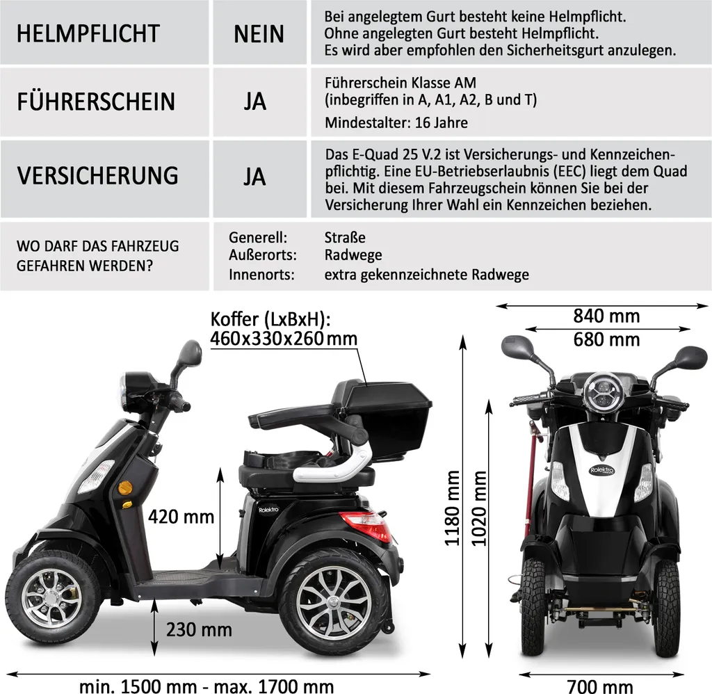 Rolektro, E-Quad 25, Schwarz, 60V-20Ah Bleigel Akkus, 1000 Watt