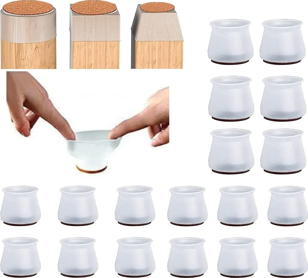 Silikon Stuhlbein Bodenschoner, 32 Stück Schutzkappen Mit Filzunterseite Für Hartholzböden, Fliesen, Vinyl Und Laminatboden Transparent