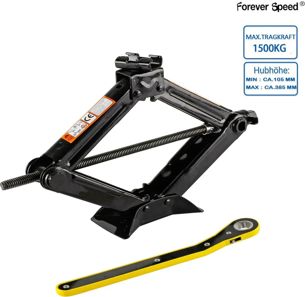 Speed 1.5T Scherenwagenheber Wagenheber PKW Heber Mit Schraubenschlüssel Für Auto Familienauto Kleinlastwagen – Schwarz