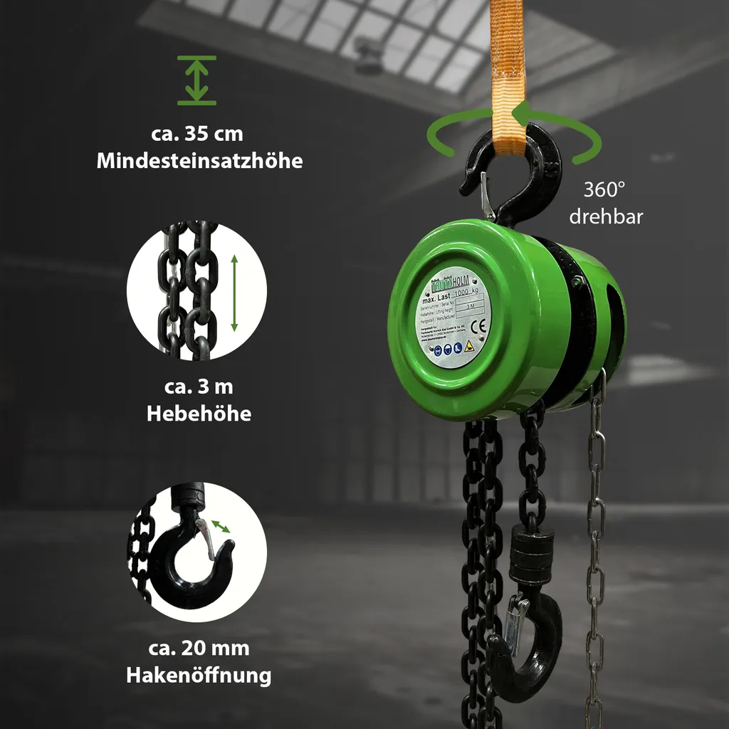 TrutzHolm® Flaschenzug Seilzug Kettenzug Hebezug Ratschenzug 1000 Kg / 1 T Tragkraft – 3000 Mm / 3 M Hubhöhe – HSZ – Rund