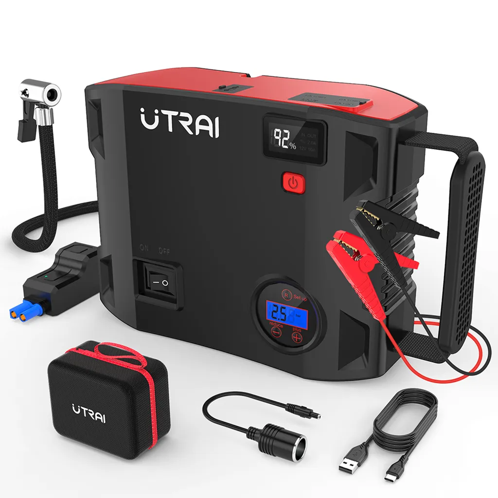 UTRAI Auto Starthilfe 4 IN 1 2000A 12V 150PSI Autoluftpumpe Powerbank 24000mAh Anlasser Mit Intelligentem Kabel, USB-C Kabel, LED Taschenlampe, QC 3.0,DC-Ausgang JSTAR 5