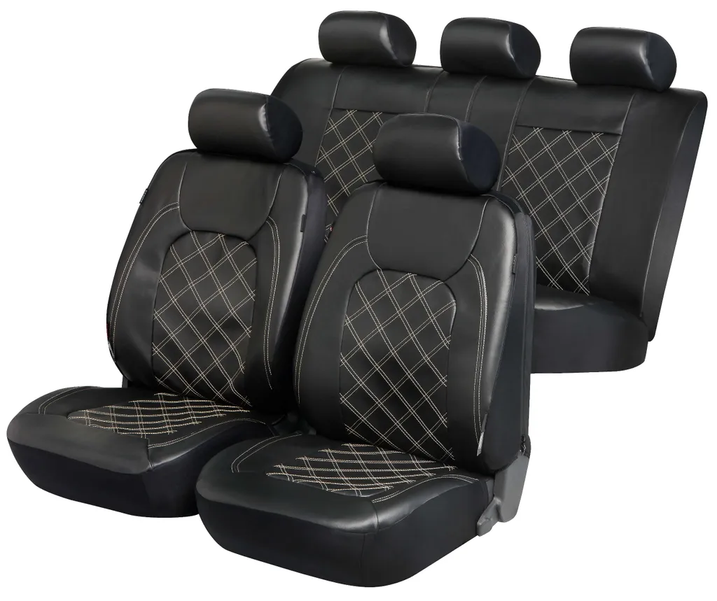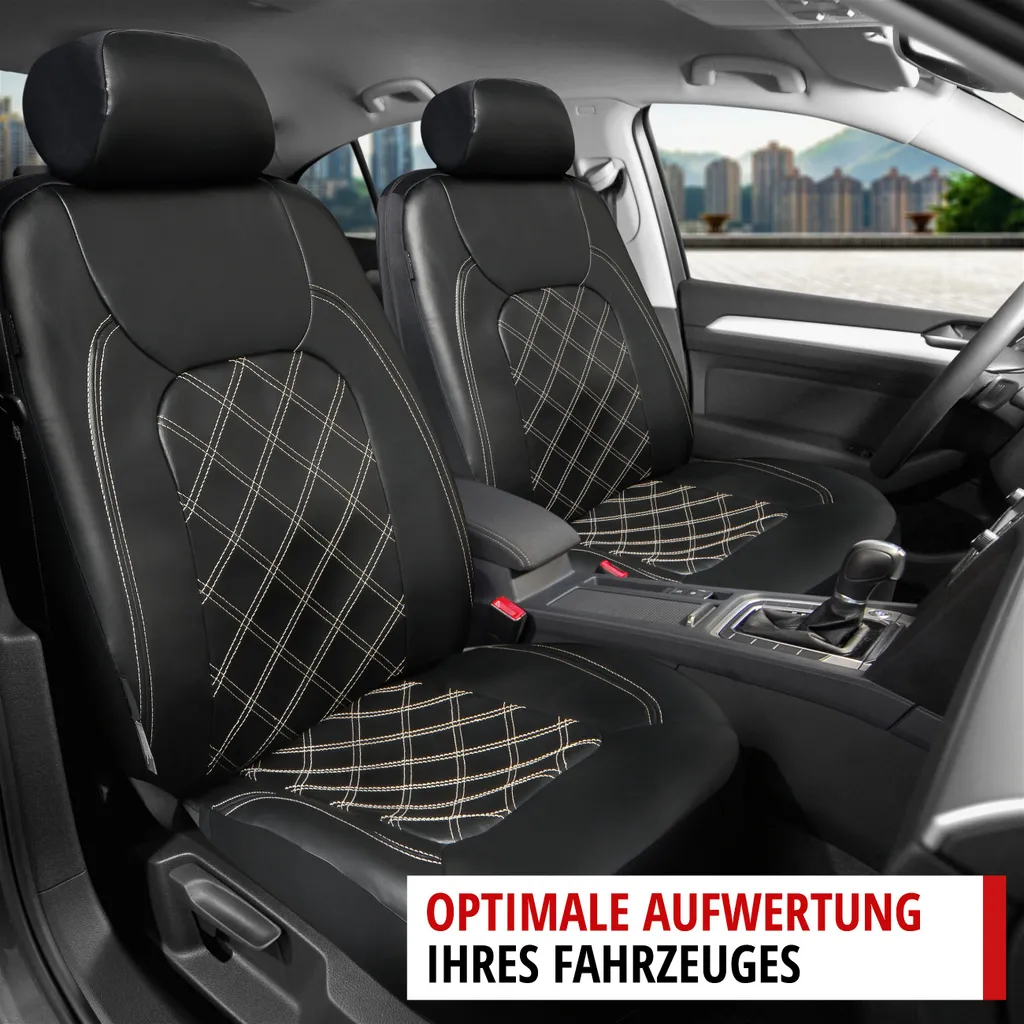 WALSER Deluxe Auto Sitzbezug Paddington Mit Reißverschluss, ZIPP-IT Schonbezüge Auto, Komplettset, 2 Vordersitzbezüge, 1 Rücksitzbezug Schwarz 11979