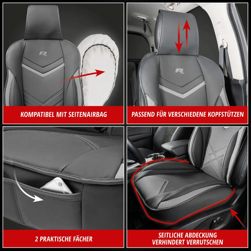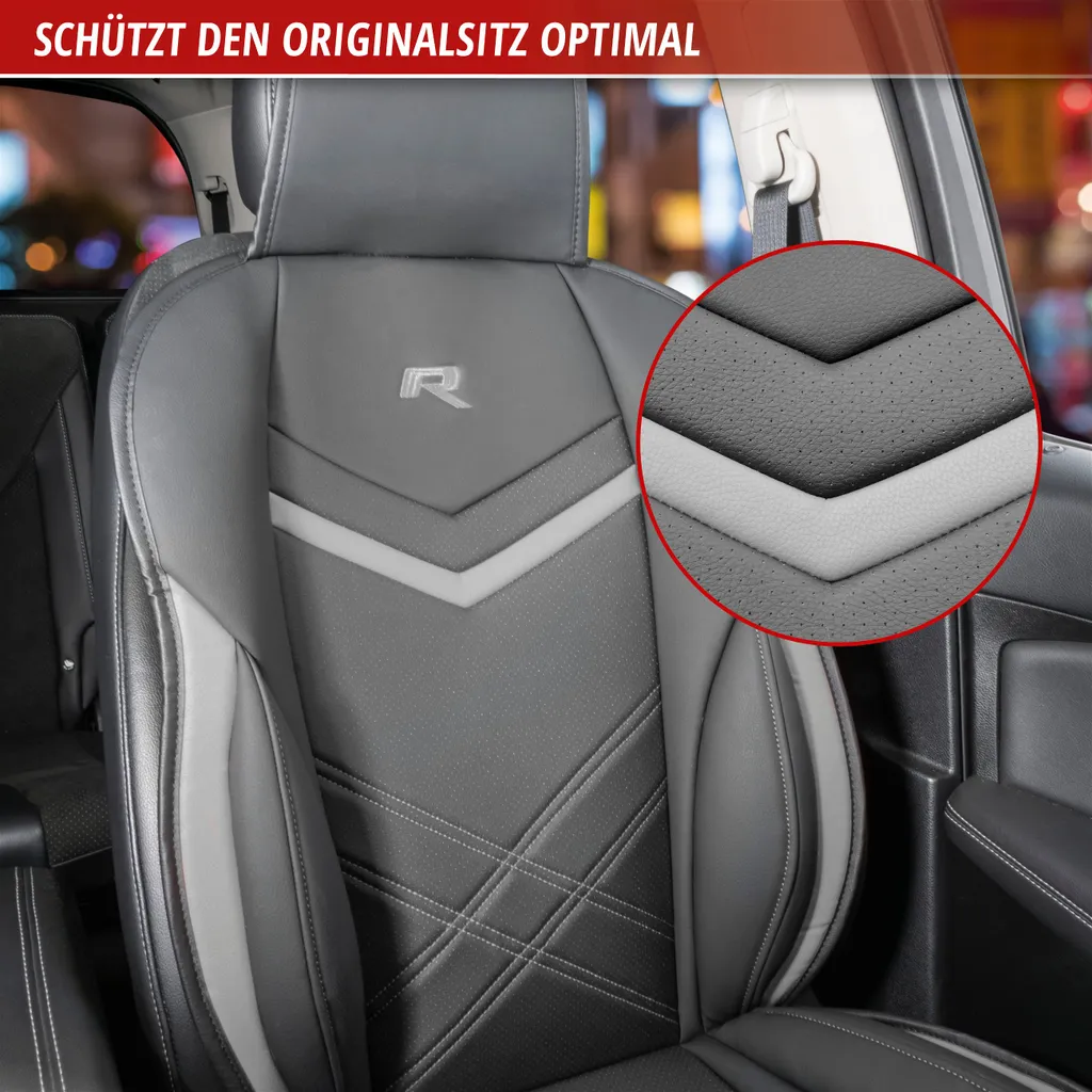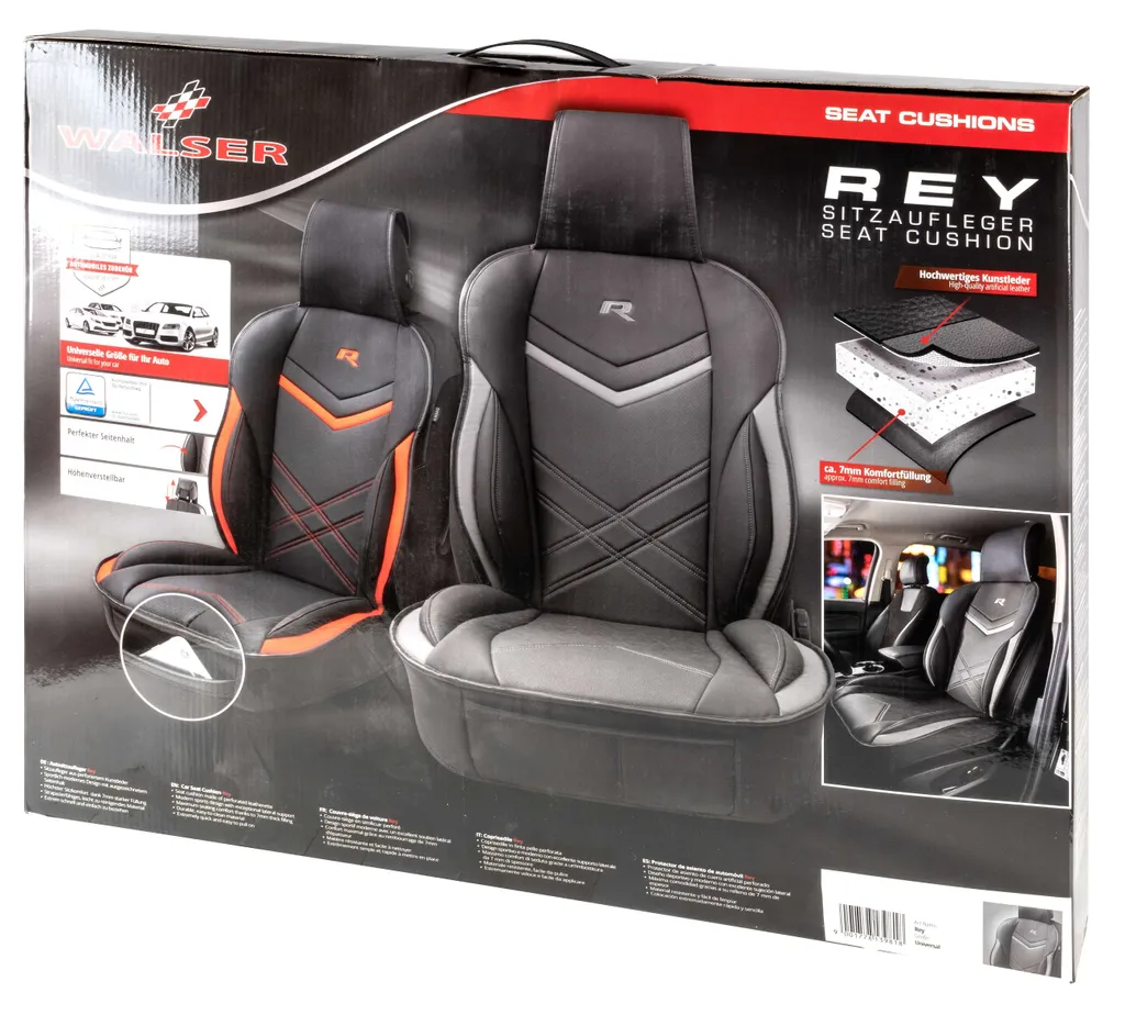 WALSER Sitzauflage Auto Rey, Sitzschoner Auto Schwarz/grau, Universal Auto Sitzauflagen, Autositzauflage Vordersitze, Sitzbezug Auto Vordersitze, Sitzkissen Auto Sportlook, Sitzbezüge Auto Für PKW/LKW